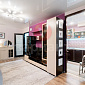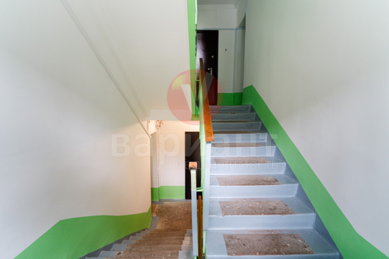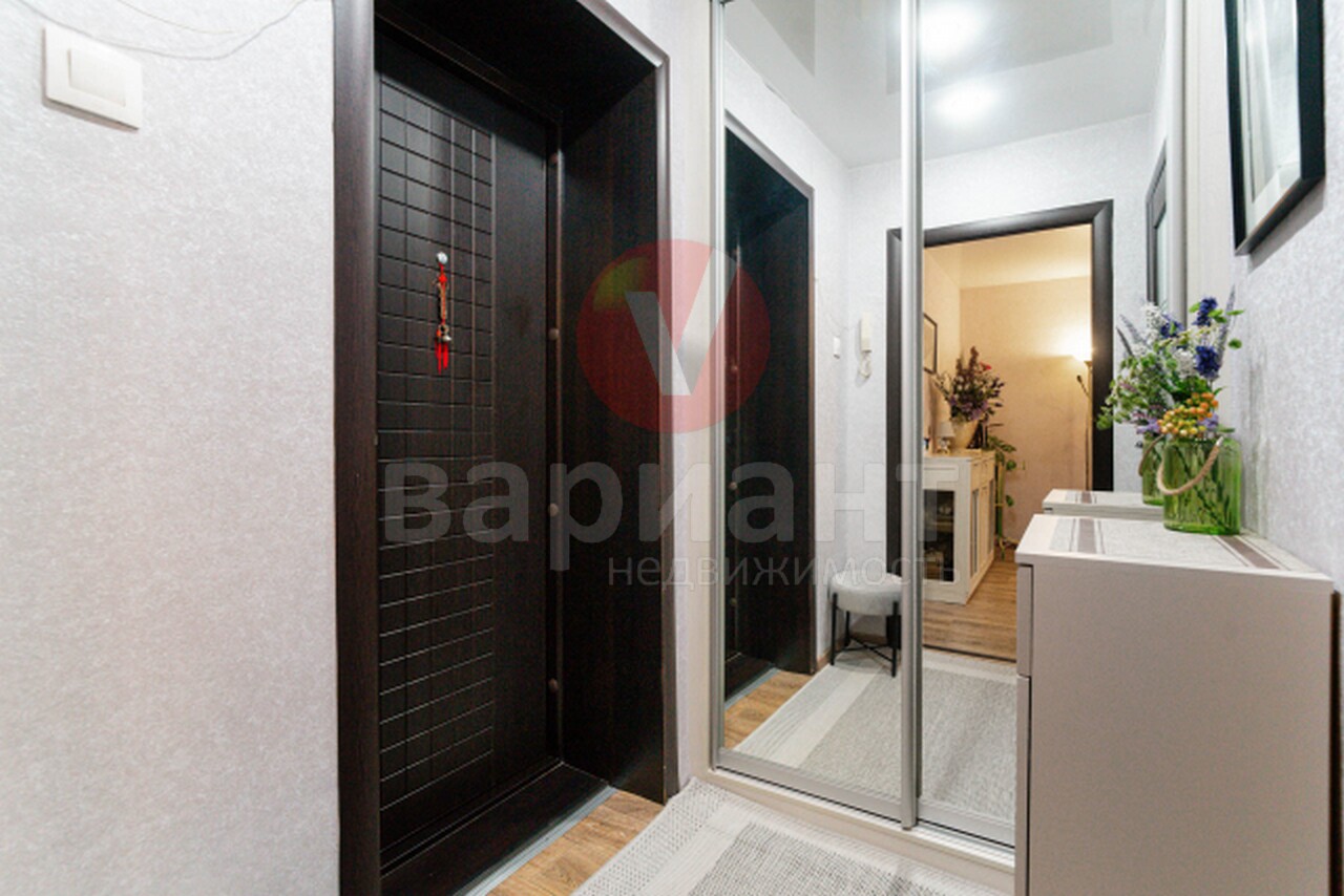 Стены выровнены. Установлен большой шкаф-купе. Входная дверь с шумоизоляцией. Чистый подъезд.