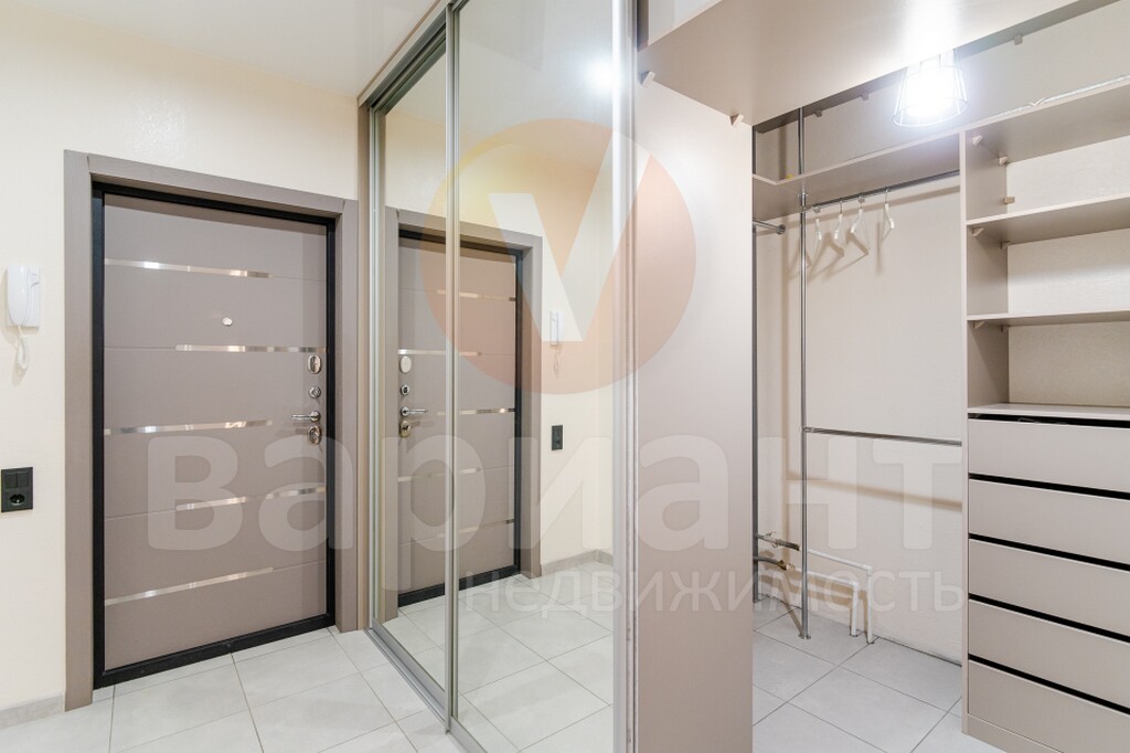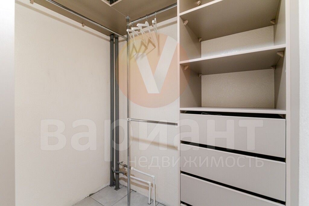 Вместительная гардеробная с удобными полками и продуманным хранением. Уютная лоджия с системой теплого пола.