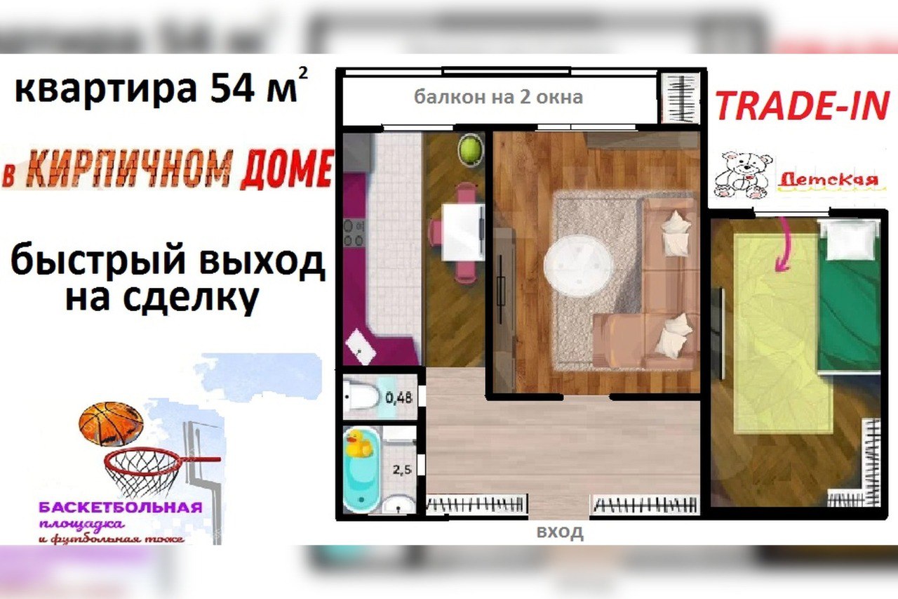 - Общая площадь54 м2