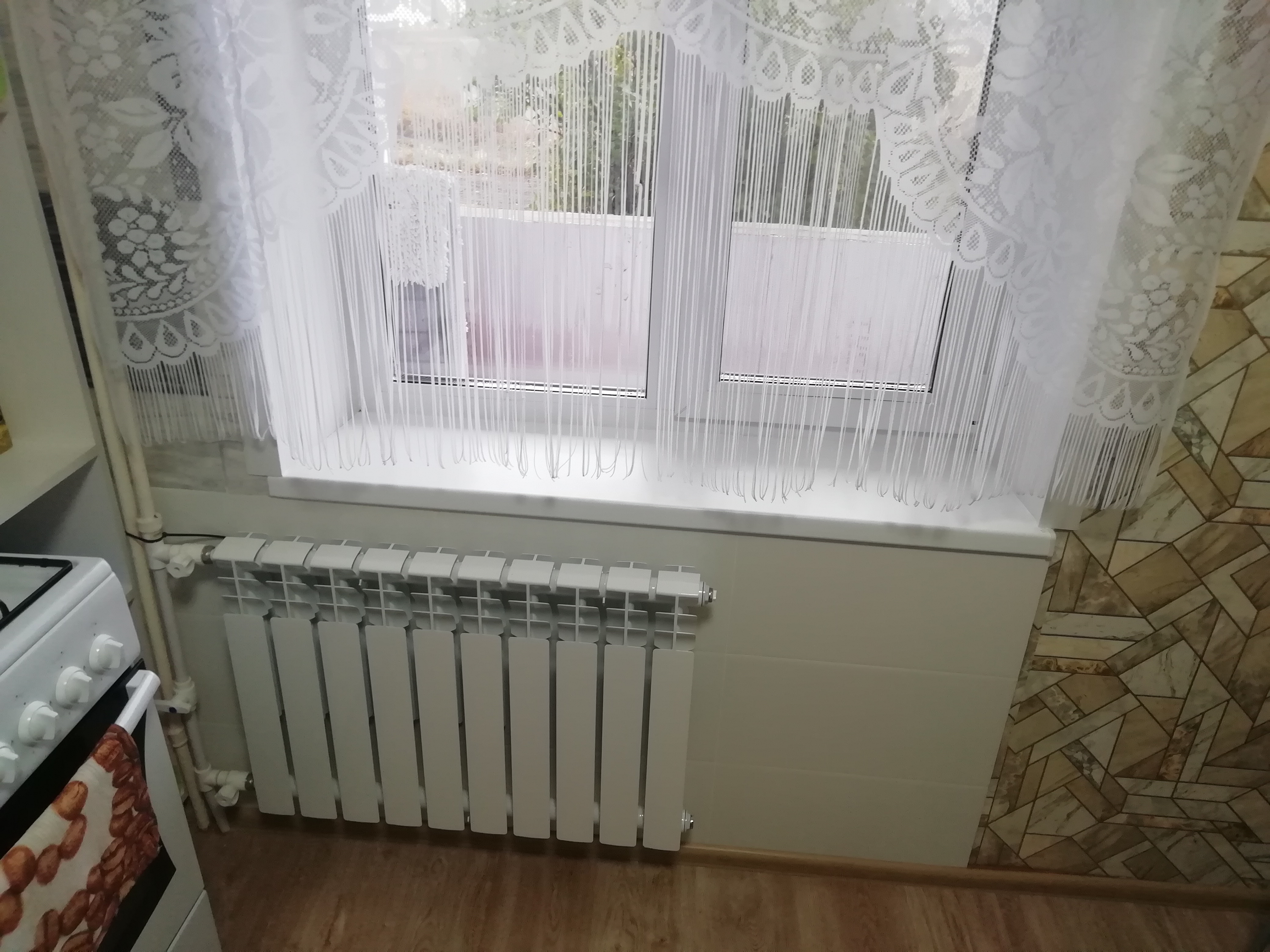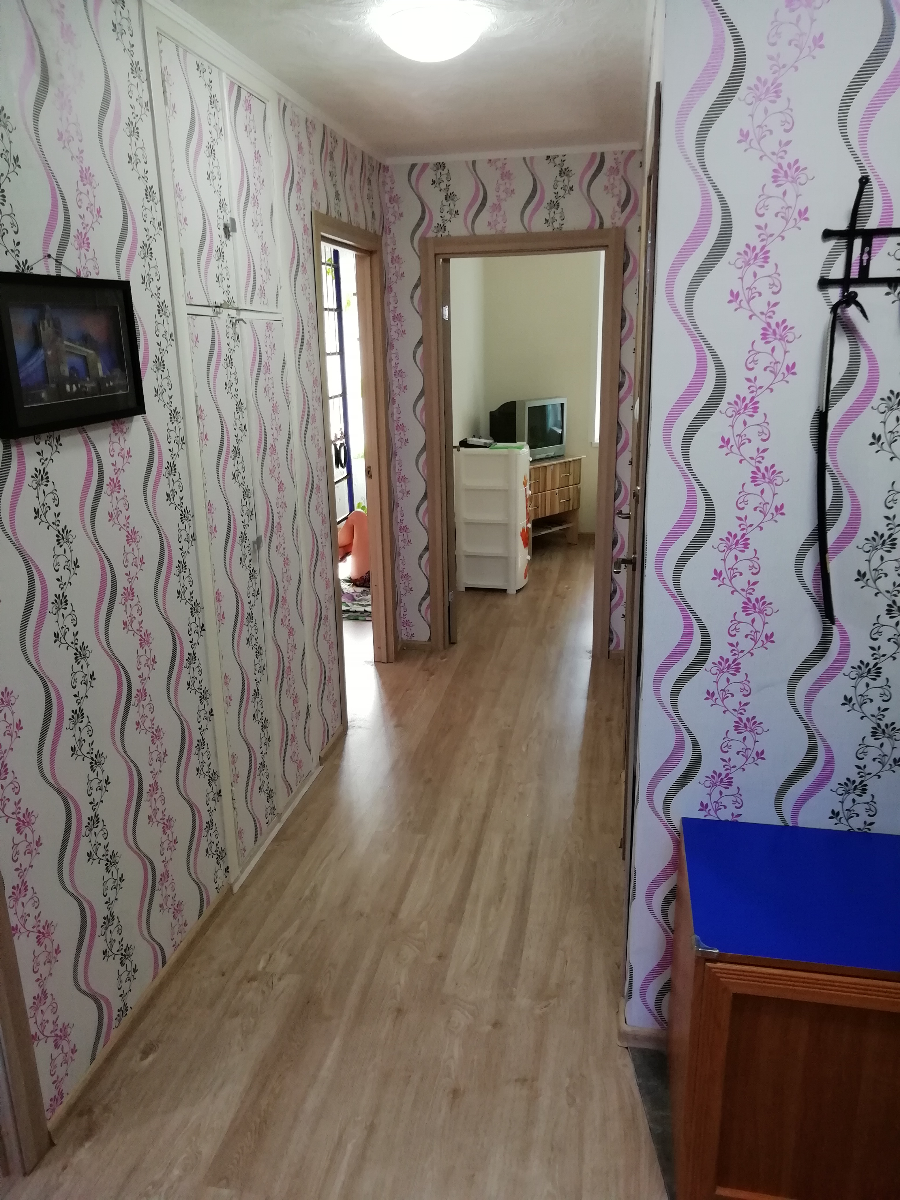 В коридоре на полу керамогранит. Лоджия 6 квадратов, на зал и кухню, выход с зала. Была полностью построена заново из вармита с утеплением плекса . 14 октября был установлен ветраж. Окна ПВХ новые везде, тоже полностью утеплены. Разводка по воде вся новая, включая задвижки и краны в подвале. Батареи новые биметалл. Санфаянс новый, ванна акрил. Ванная комната и санузел раздельные, в кафеле. Во все комноты проведена антенна стутникого ТВ МТС (оставлю все доровора и оборудование при вашем желании).Новый кухонный гарнитур, выполнен на заказ,под размер кухни (оставлю новым собственникам в подарок).
