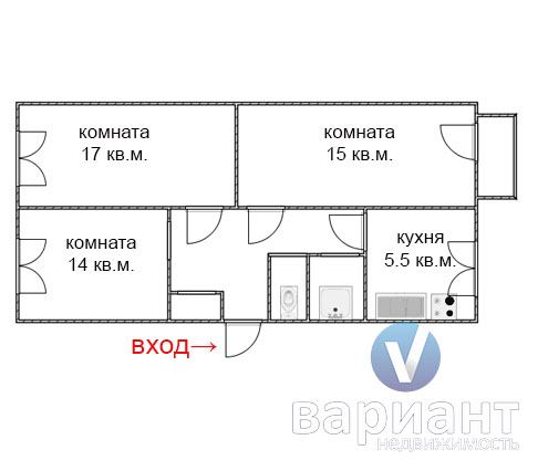 | Трехкомнатная квартира 63 м2 |