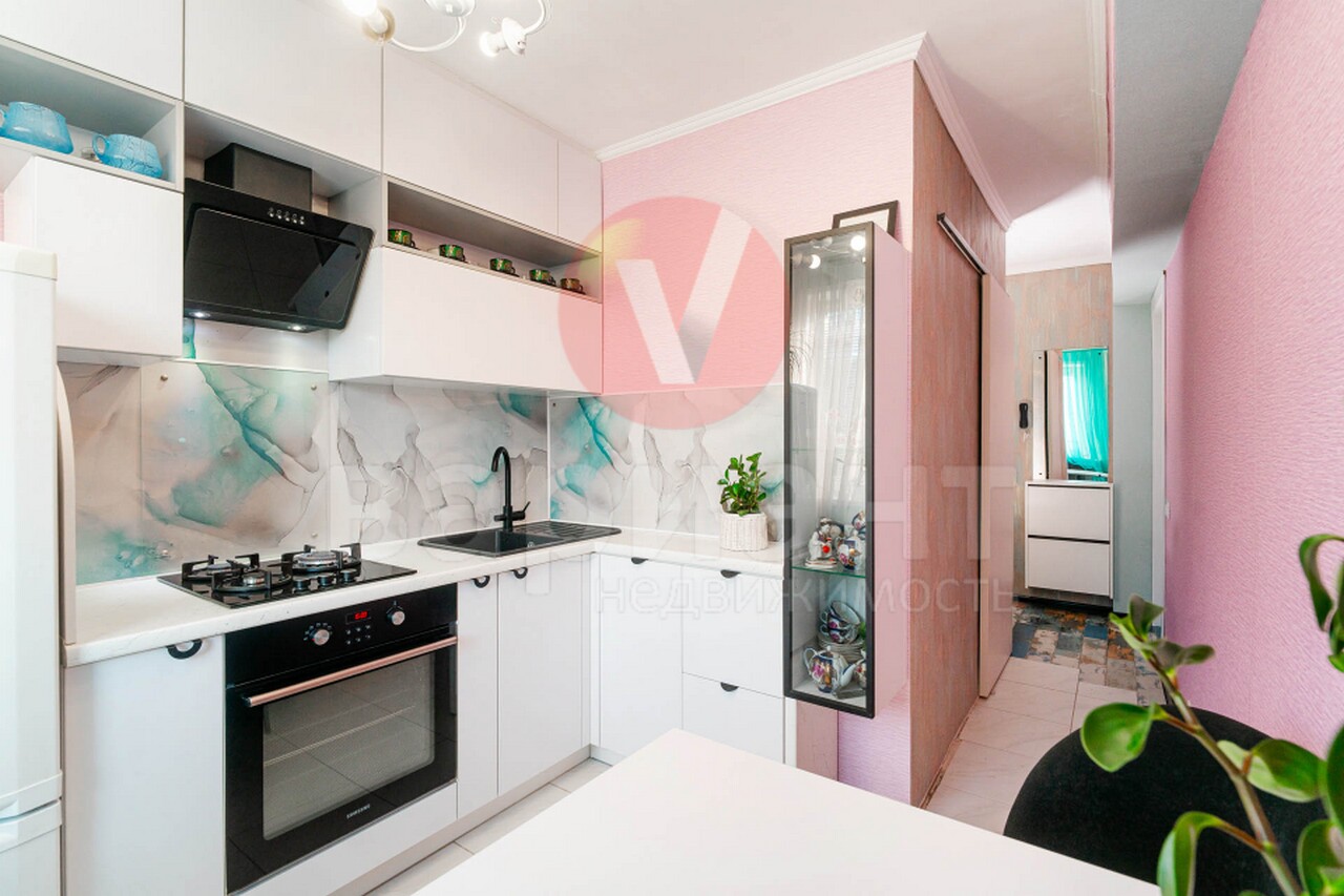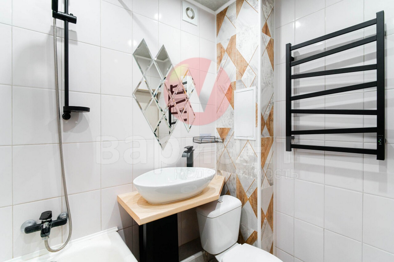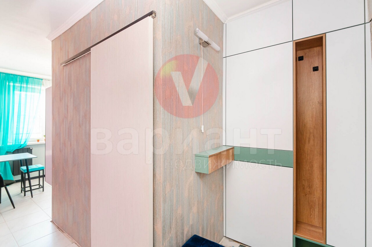 Установлен новый кондиционер. Поменяны радиаторы отопления. Ванна - кафель, новая сантехника. На кухне современный гарнитур со встроенной техникой (газовая панель, духовой шкаф, вытяжка). В коридоре новый вместительный шкаф. В комнате новые навесные шкафы, по дизайн-проекту. Пол – линолеум.